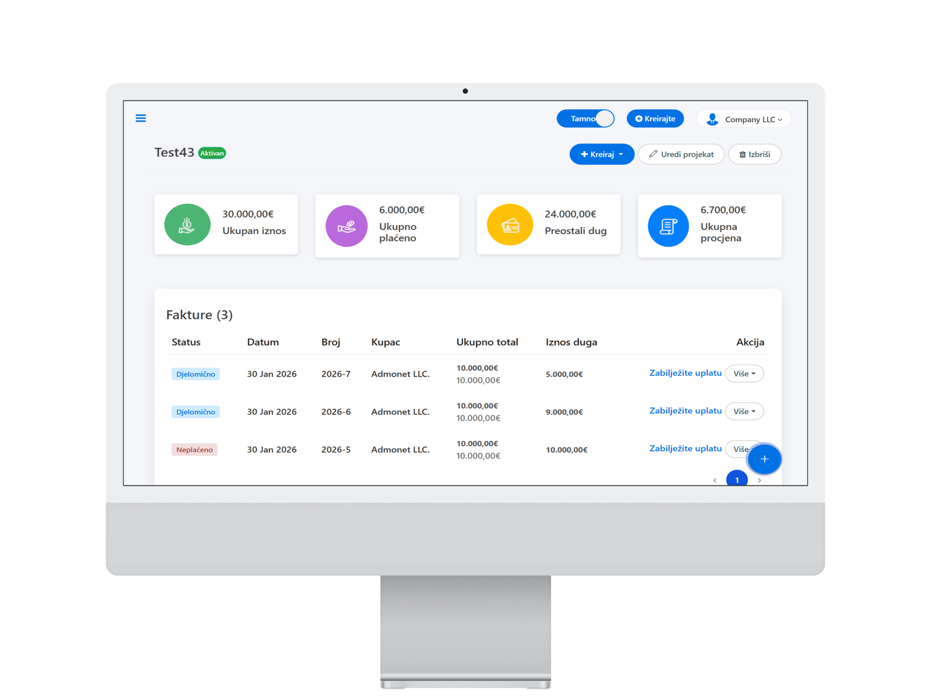 Pratite ponude i fakture po projektima brzo, jednostavno i pouzdano.